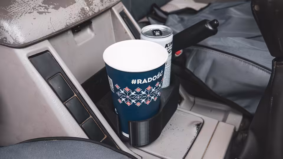 Przychodzimy z pomocą! Dzięki naszemu uchwytowi masz pewność, że twoja kawa nie wyleje się.